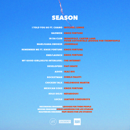 Stream the new project from SAVEMONEY‘s Leather Corduroys (the side-project of Joey Purp and Kami de Chukwu), titled Season. The 14-track Season contains features from Chance the Rapper and Knox Fortune, and has production from Odd Future’s The Internet (among others).