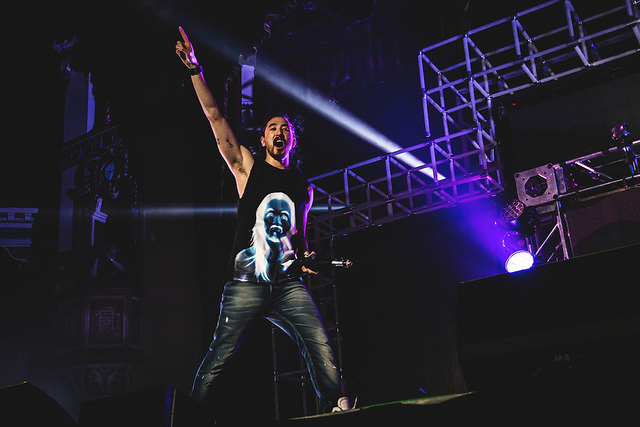 This past Saturday electro-house musician Steve Aoki brought his energetic Neon Future Experience tour to Chicago’s Aragon Ballroom. Fans lined up for blocks in the Chicago winter, hours before Aoki hit the stage, and the wait was well worth it for the sold-out crowd. And while the line was starting to build at the Aragon, Aoki held a private listening event at Casabar for his Neon Future II project, the highly anticipated second half to his Neon Future album. Neon Future II is scheduled for a May 12th release and features Linkin Park, Snoop Lion, Matthew Koma and more (stream the video for its ‘I Love It When You Cry’ single here). Not only did fans get to experience Neon Future II last night, but Aoki also performed a number of cuts and fan favorites from his entire discography to keep the crowd hyped. Check out our photos below, as The Early Registration was there to capture some of the best moments of the night.