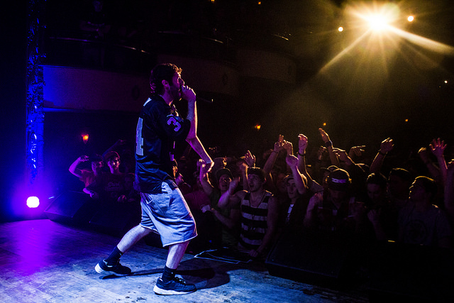 Last night rapper Lil Dicky brought the spring leg of his Professional Rapper tour to the Majetic Theatre in Madison, WI. Performing his early tracks like ‘Ex-Boyfriend’ and ‘White Dude’ from his So Hard mixtape, LD also performed a brand new track and his newest singles ‘White Crime’ and ‘Lemme Freak’. Dicky described his previous performance in Mad-Town as his best to date (“and it’s not even close”), and the sold-out crowd matched Lil Dicky’s energy all night, just an hour after Frank “The Tank” Kaminsky (a fan of LD) and the Wisconsin Badgers beat Coastal Carolina in the NCAA men’s basketball tournament. Check out our photos below, as The Early Registration was there to catch the best moments of the night, and if LD is coming to a city near you, do not miss out.