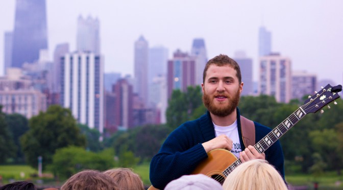 Mike Posner is currently on the road, traveling across the United States with a few friends while he makes stops in a number of cities for surprise pop-up shows, for crowds of just a couple hundred people. Last night, Posner brought this tour of intimate performances to Chicago’s Lincoln Park, which holds some of the best views of the Chitown skyline. Introduced by his friend and co-writer, Adam Friedman, Mike performed his new EP, The Truth, as well as his catalog of hits (‘Cooler Than Me’, ‘Please Don’t Go’) and even some unheard music from his forthcoming sophomore album. The scenery was beautiful, as Posner and some of his most dedicated fans hung out just before dusk, playing music and sharing laughs.
