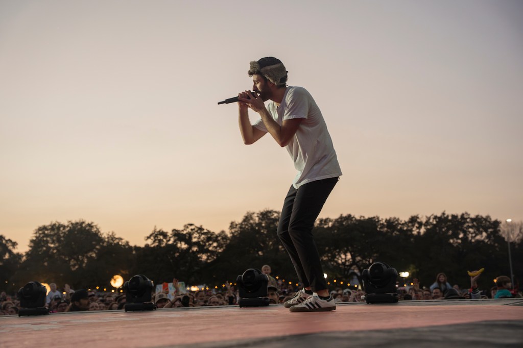 Benson Boone performs a backflip while performing at the Austin City Limits Music Festival (Photo by Dan Garcia/The Early Registration).