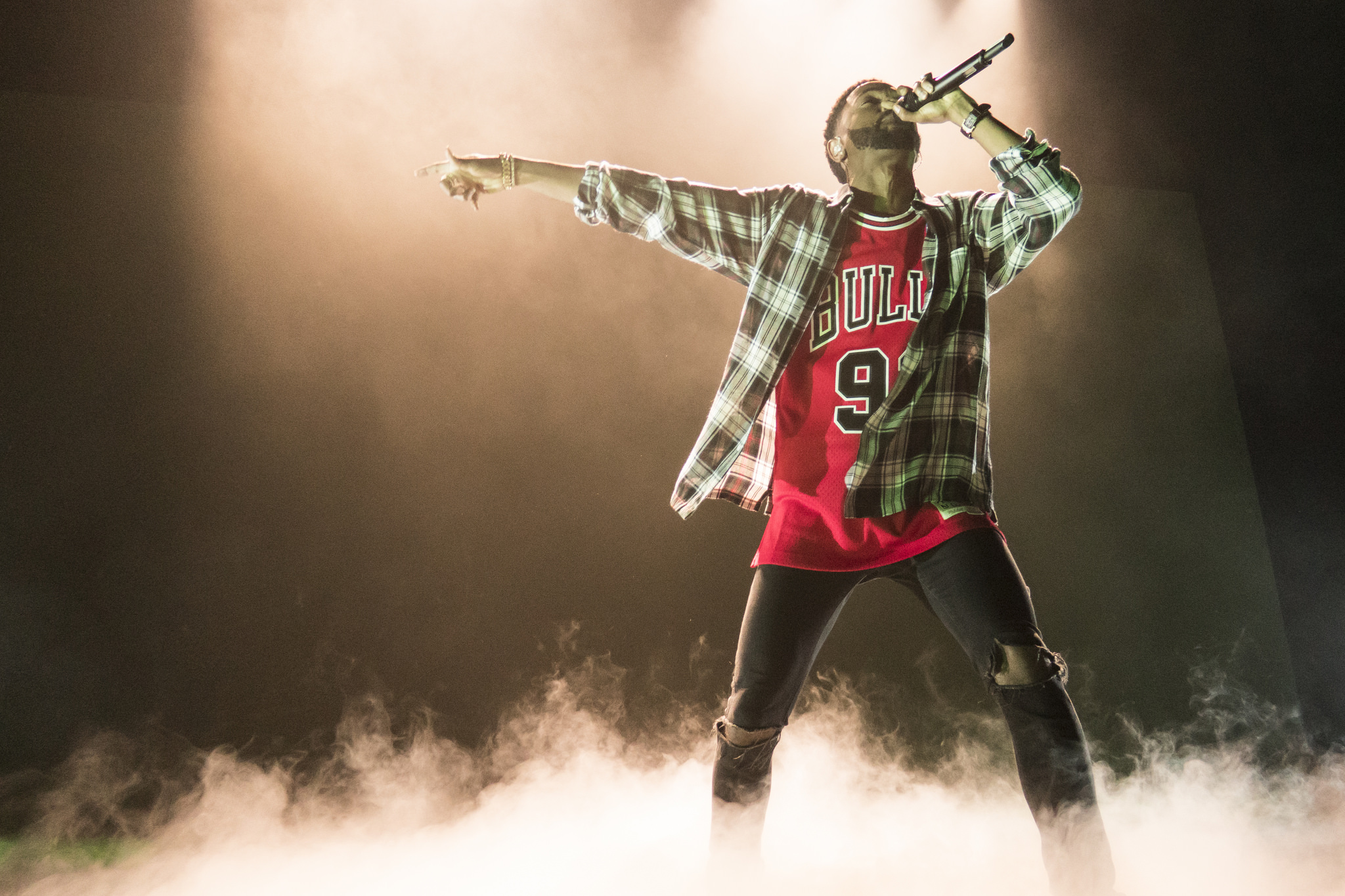 Repping a killer Dennis Rodman jersey, Big Sean got the crowd moving with his I Decided track ‘Moves’, which he then followed up with tracks like ‘Paradise’, ‘No Favors’ and his stand out GOOD Music verses on ‘Mercy’ and ‘Clique’. Early on Big Sean also took time to thank the sponsors for bringing him back to one of his favorite cities in the world, where he also had to give a big shoutout to Harold’s Chicken.