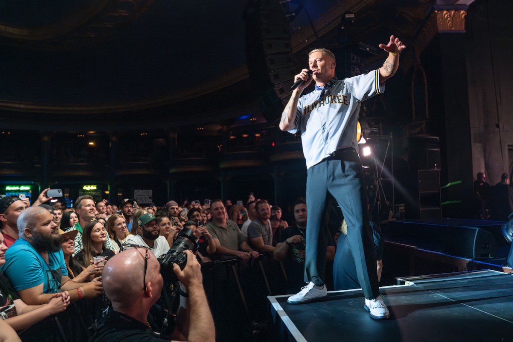 The homage to Milwaukee didn’t stop there, as Macklemore also gave a huge shoutout to the venue. “I’m not going to lie to you, Milwaukee, I play a lot of places and have a lot of favorite venues”, Macklemore told the crowd. “But The Rave’s Eagles Ballroom is at the top of the f*cking list”, Macklemore continued to the sold out crowd’s delight.